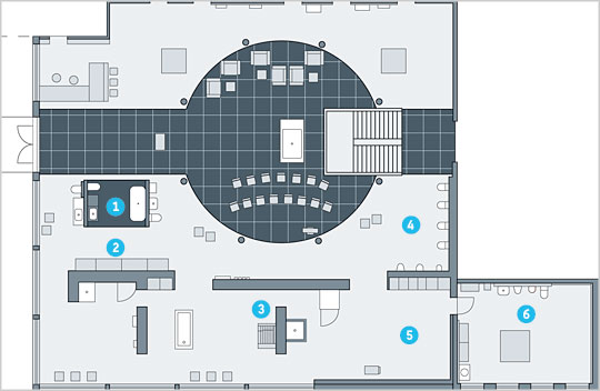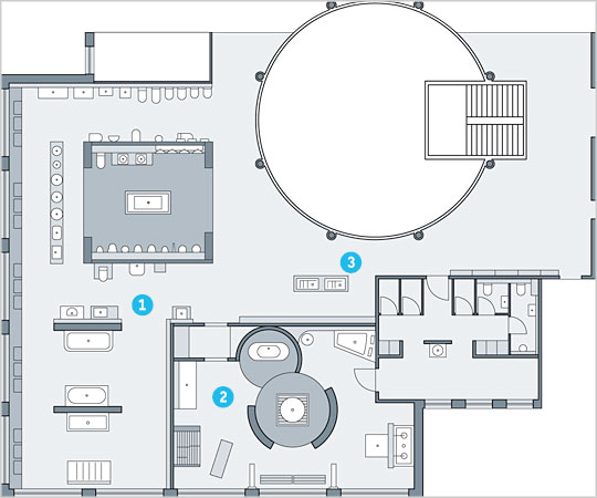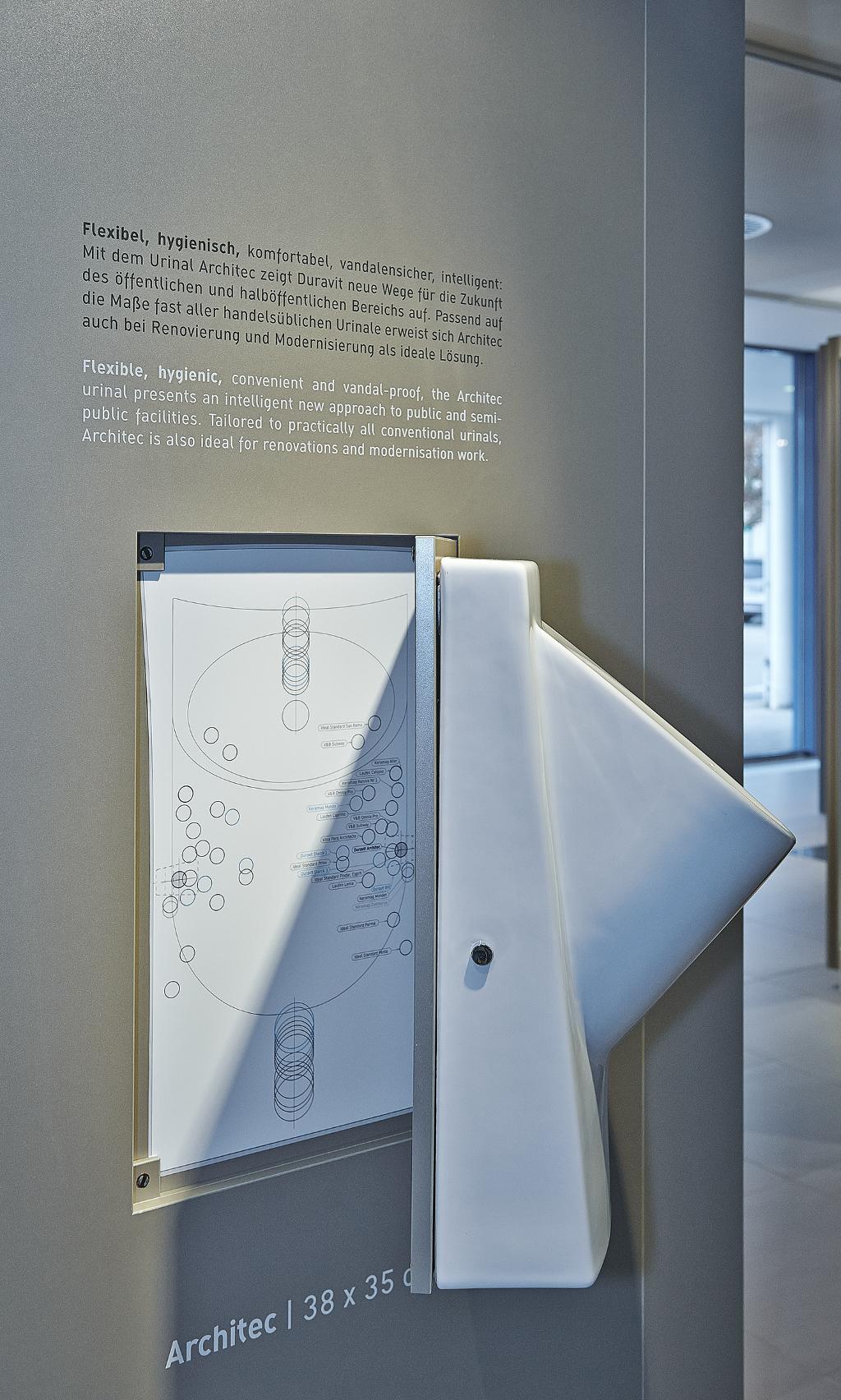 A look behind the scenes: on the ground floor visitors can discover how washbasins and bathroom furniture are made and find out about the latest products with innovative technology adapted for intuitive use. The cross-sectional models, working flushing systems and a furniture testing area at the Duravit Technology Center show the functioning and added value of brand products.